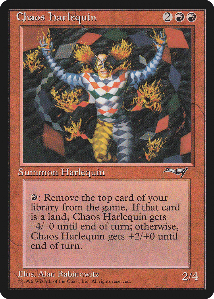 {R}: Exile the top card of your library. If that card is a land card, this creature gets -4/-0 until end of turn. Otherwise, this creature gets +2/+0 until end of turn.