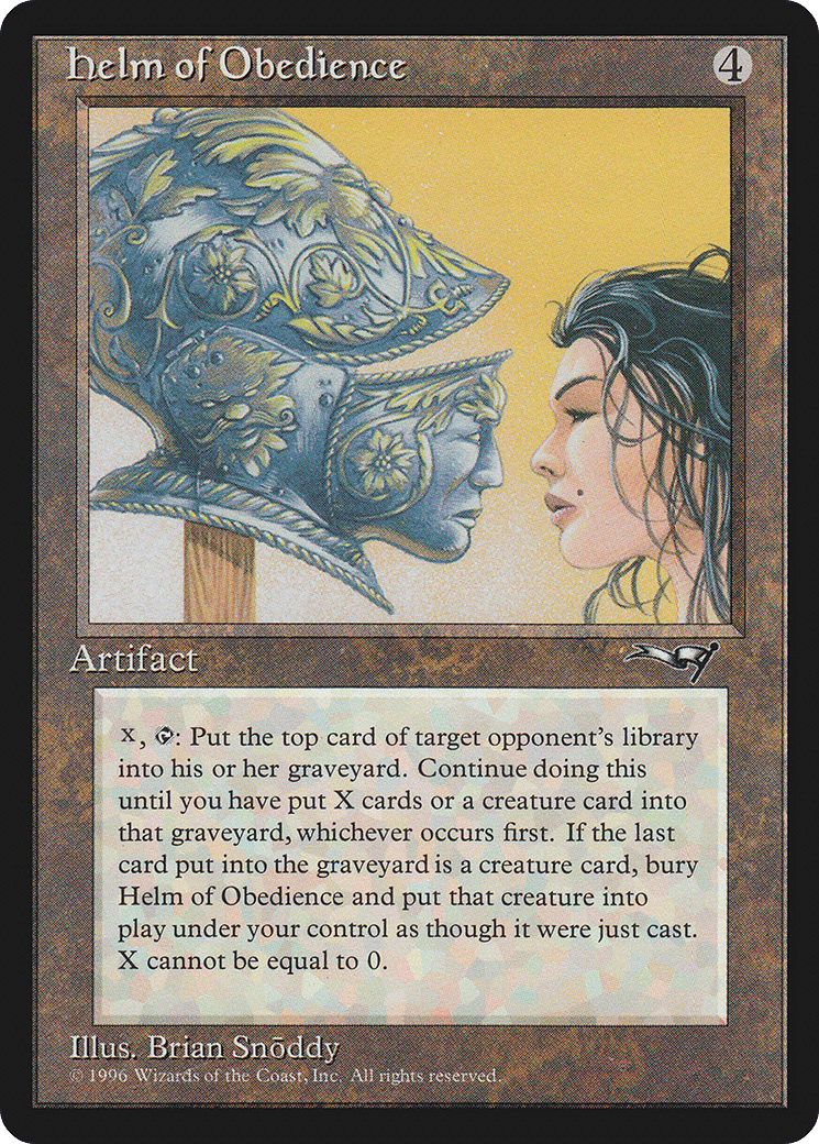 {X}, {T}: Target opponent mills a card, then repeats this process until a creature card or X cards have been put into their graveyard this way, whichever comes first. If one or more creature cards were put into that graveyard this way, sacrifice this arti
