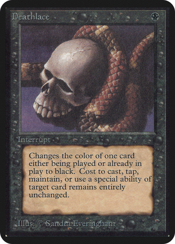 Target spell or permanent becomes black. (Mana symbols on that permanent remain unchanged.)