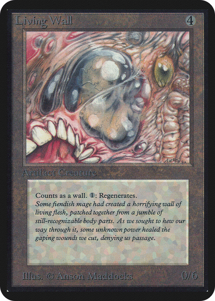 Some fiendish mage had created a horrifying wall of living flesh, patched together from a jumble of still-recognizable body parts. As we sought to hew our way through it, some unknown power healed the gaping wounds we cut, denying us passage.