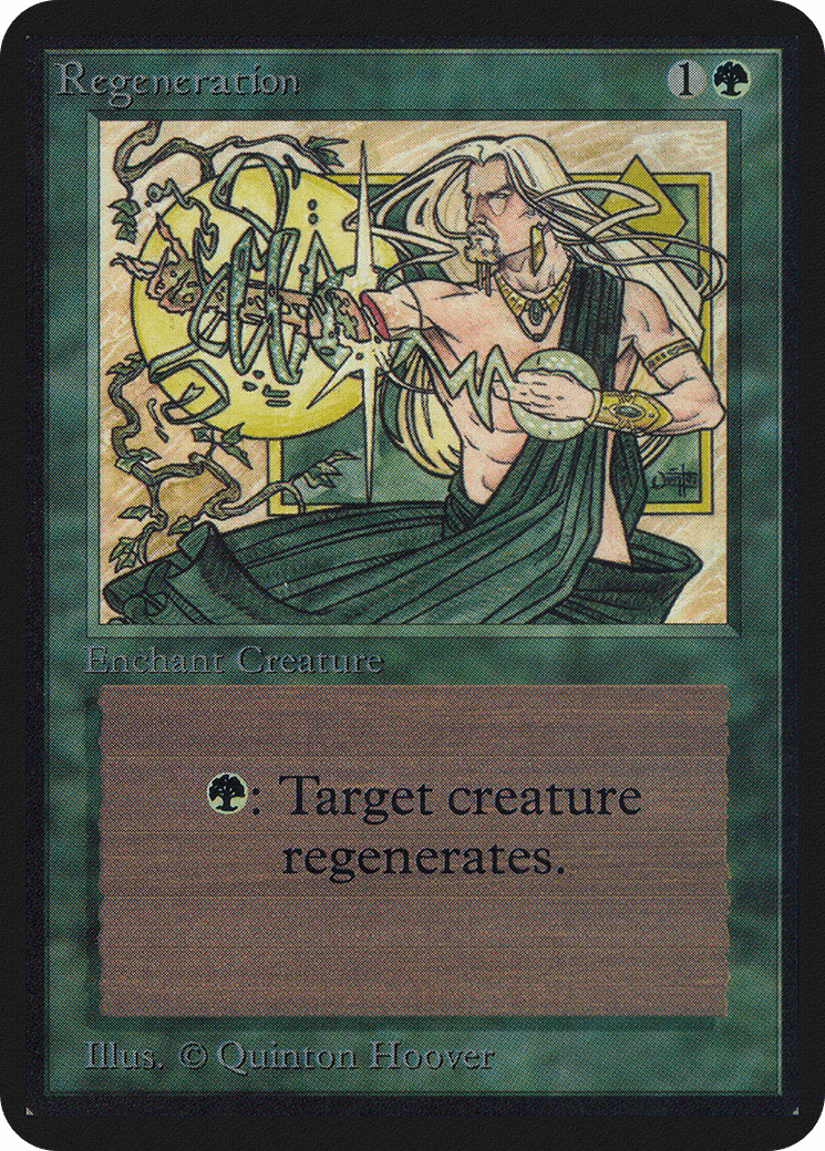 {G}: Regenerate enchanted creature. (The next time that creature would be destroyed this turn, instead tap it, remove it from combat, and heal all damage on