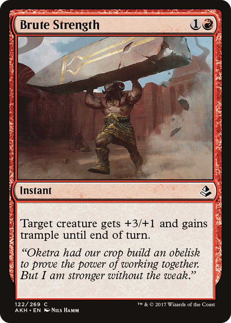 Target creature gets +3/+1 and gains trample until end of turn. (It can deal excess combat damage to the player or planeswalker it’s attacking.)