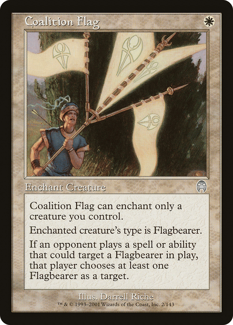 While an opponent is choosing targets as part of casting a spell they control or activating an ability they control, that player must choose at least one Flagbearer on the battlefield if abl