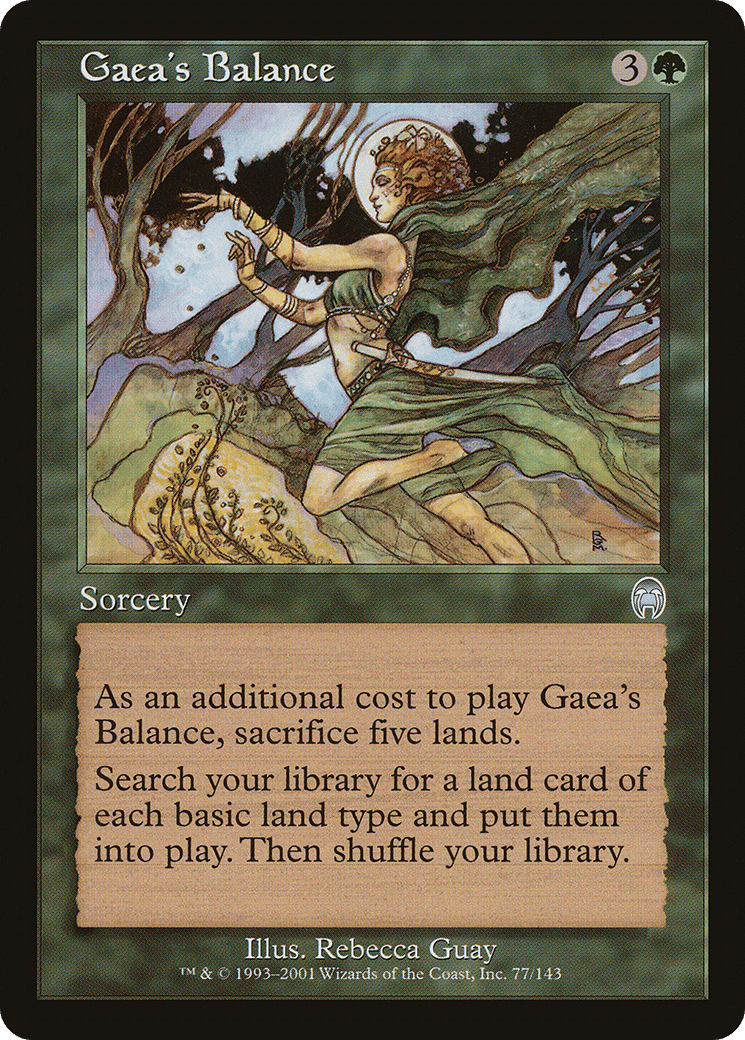 As an additional cost to cast this spell, sacrifice five lands. Search your library for a land card of each basic land type, put those cards onto the battlefield, then shuffle.