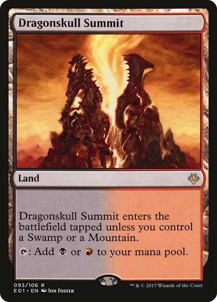This land enters tapped unless you control a Swamp or a Mountain. {T}: Add {B} or {R}.