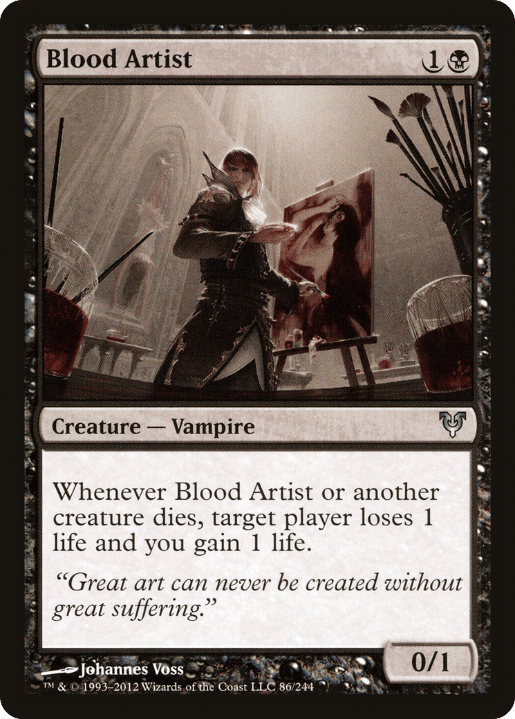 Whenever this creature or another creature dies, target player loses 1 life and you gain 1 life.