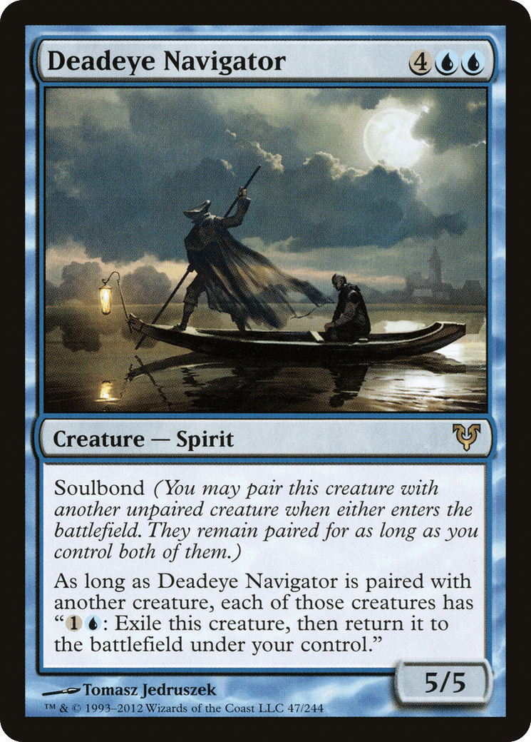 As long as Deadeye Navigator is paired with another creature, each of those creatures has “{1}{U}: Exile t