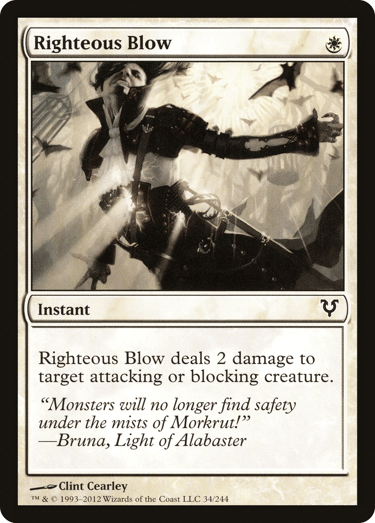 Righteous Blow deals 2 damage to target attacking or blocking creature.
