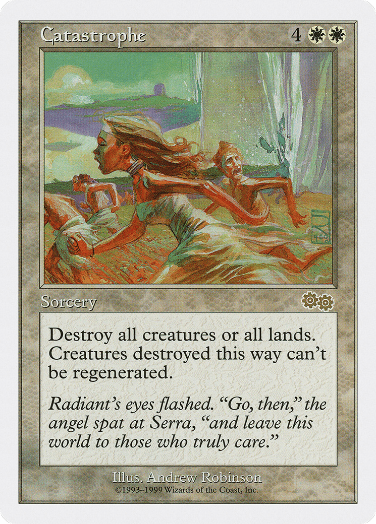 Destroy all lands or all creatures. Creatures destroyed this way can’t be regenerated.