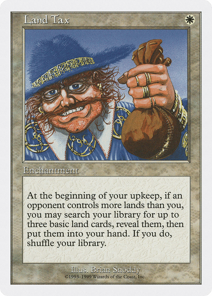 At the beginning of your upkeep, if an opponent controls more lands than you, you may search your library for up to three basic land cards, reveal them, put them into your hand, then shuffle.
