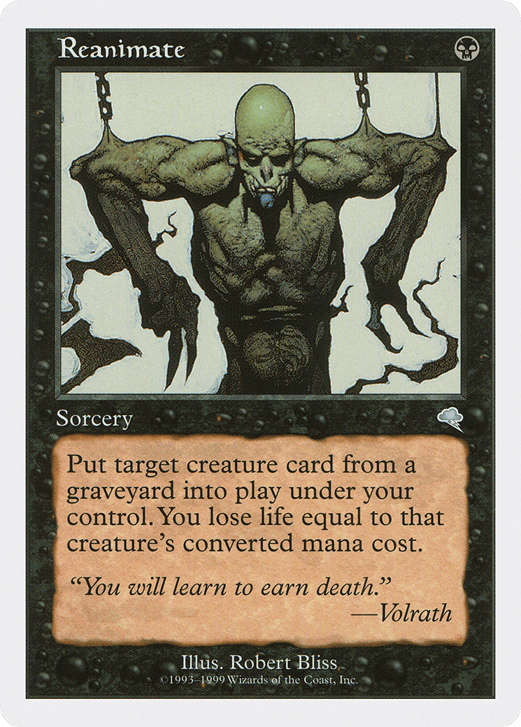 Put target creature card from a graveyard onto the battlefield under your control. You lose life equal to its mana value.