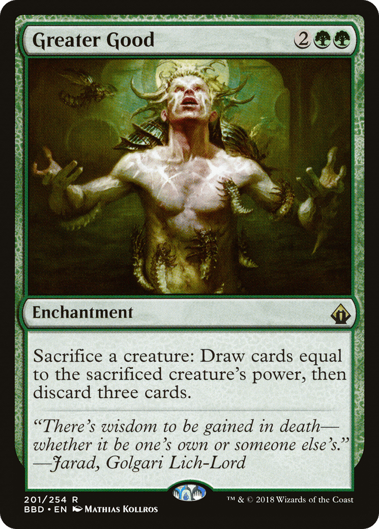 Sacrifice a creature: Draw cards equal to the sacrificed creature’s power, then discard three cards.