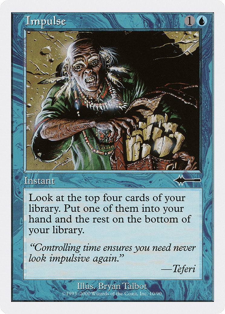 Look at the top four cards of your library. Put one of them into your hand and the rest on the bottom of your library in any order.