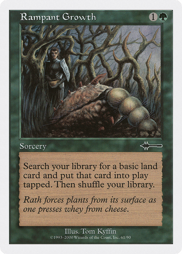 Search your library for a basic land card, put that card onto the battlefield tapped, then shuffle.