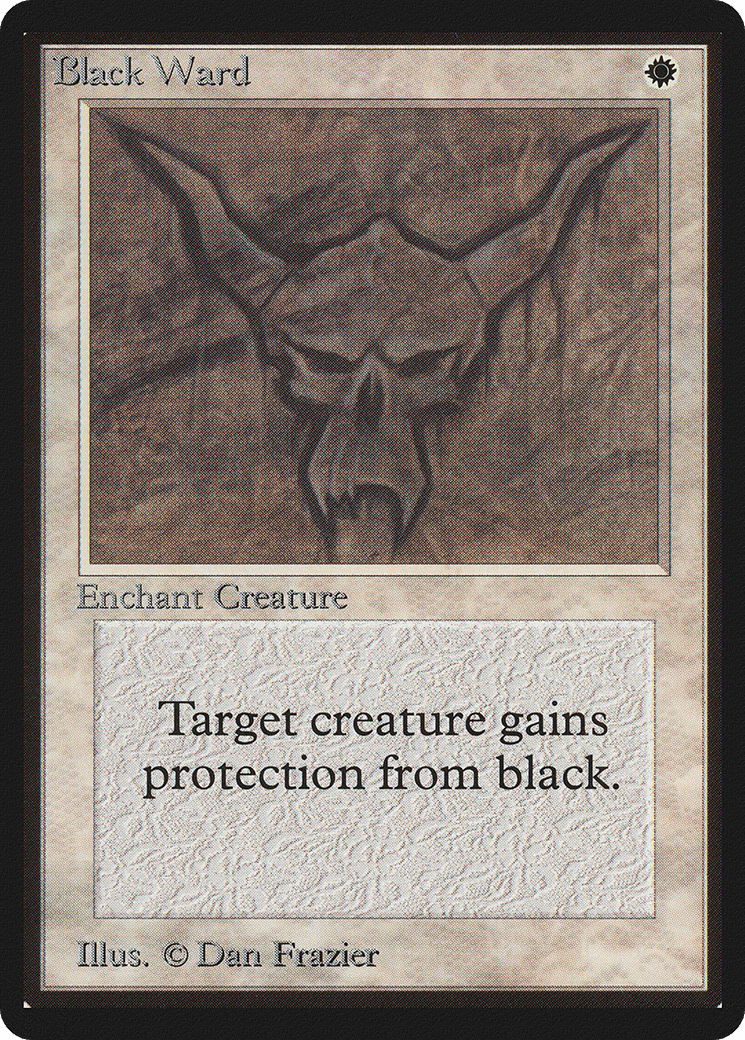 Enchant creature Enchanted creature has protection from black. This effect doesn’t remove this Aura.
