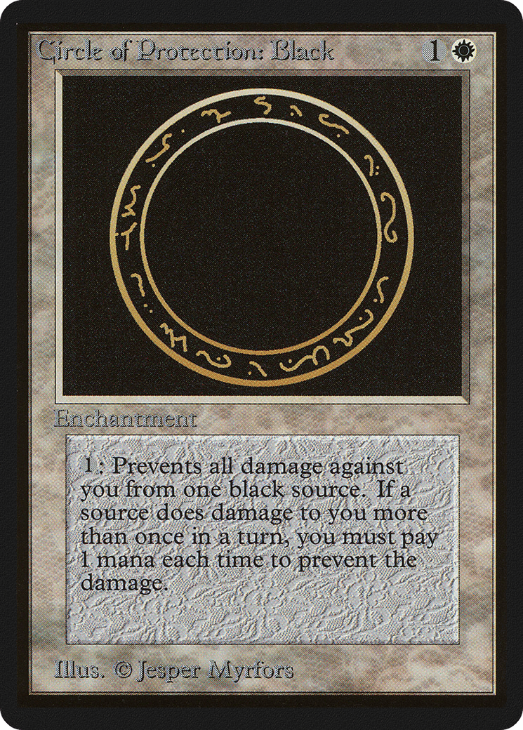 {1}: The next time a black source of your choice would deal damage to you this turn, prevent that damage.