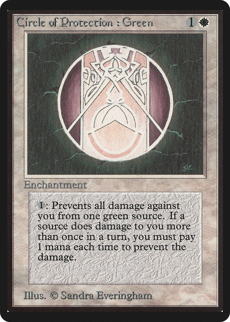 {1}: The next time a green source of your choice would deal damage to you this turn, prevent that damage.
