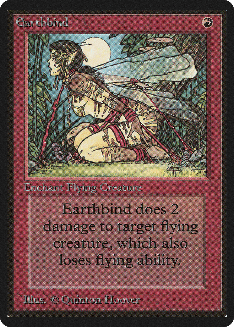Enchant creature When Earthbind enters, if enchanted creature has flying, Earthbind deals 2 damage to that creature and Earthbind gains “Enchanted creature loses flying.”