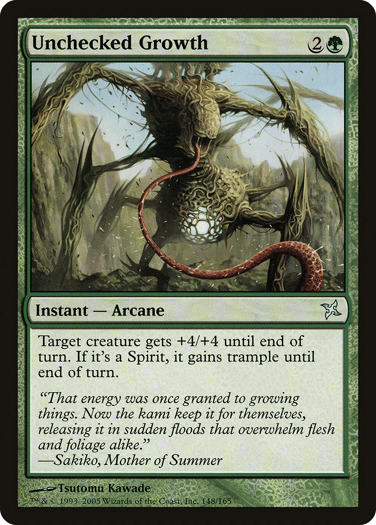 Target creature gets +4/+4 until end of turn. If it’s a Spirit, it gains trample until end of turn.