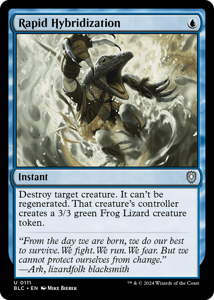 Destroy target creature. It can’t be regenerated. That creature’s controller creates a 3/3 green Frog Lizard creature token.