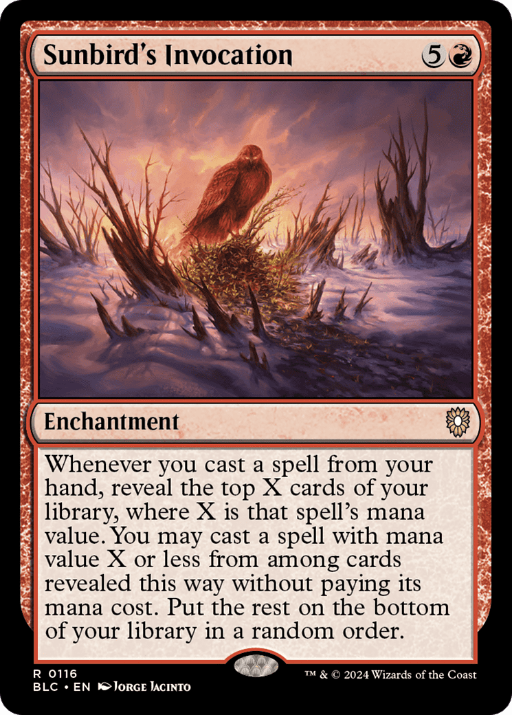 Whenever you cast a spell from your hand, reveal the top X cards of your library, where X is that spell’s mana value. You may cast a spell with mana value X or less from among cards revealed this way without paying its mana cost. Put the rest on the botto