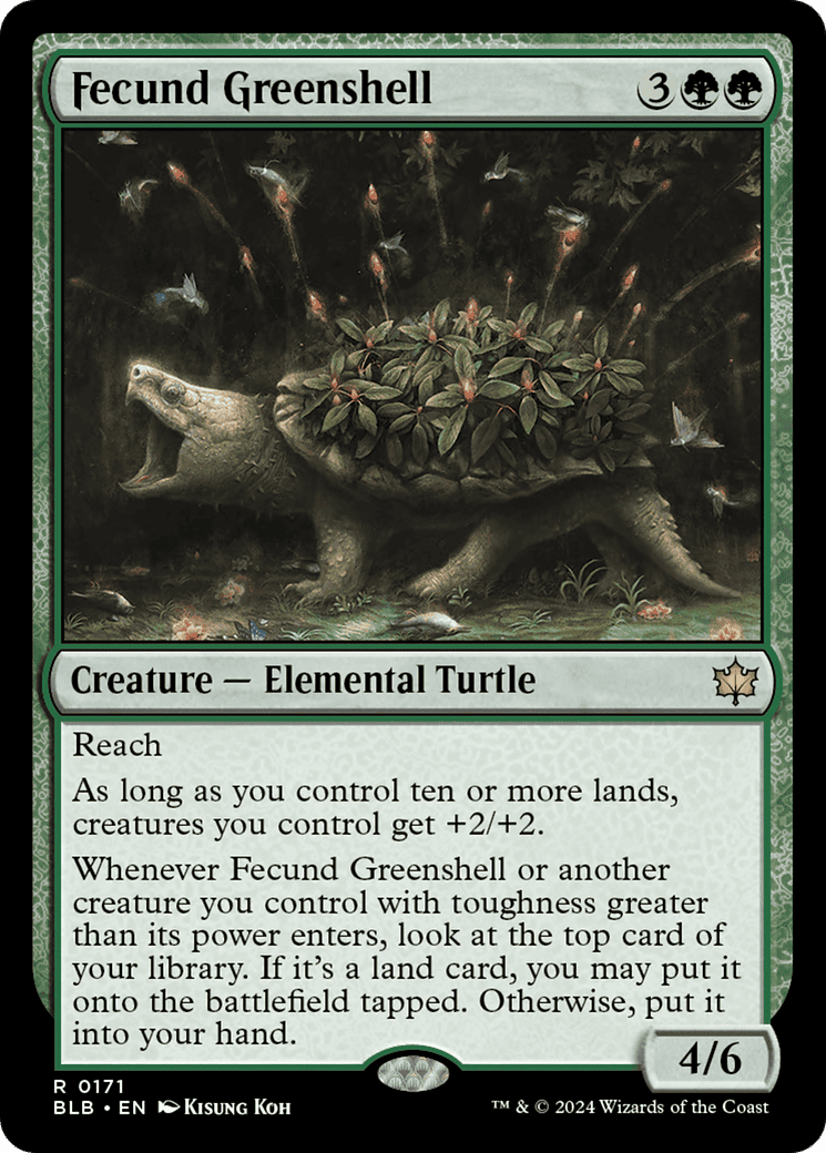 Whenever this creature or another creature you control with toughness greater than its power enters, look at the top card of your library. If it’s a land card, you may put it