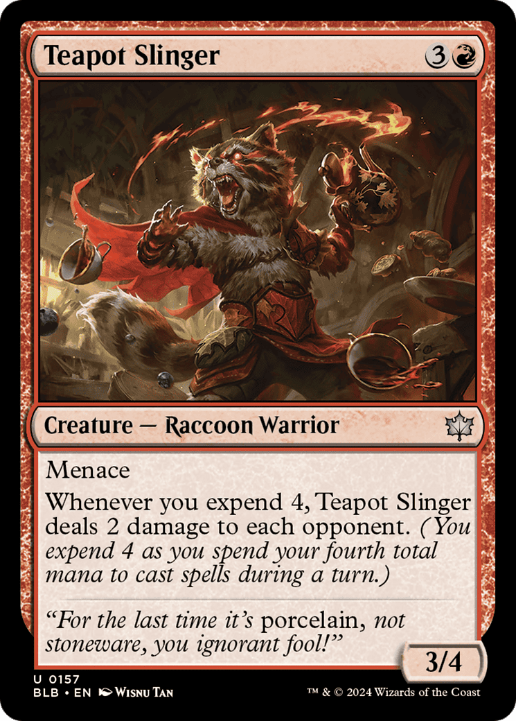 Whenever you expend 4, this creature deals 2 damage to each opponent. (You expend 4 as you spend your fourth total mana to cast spells during a turn.)