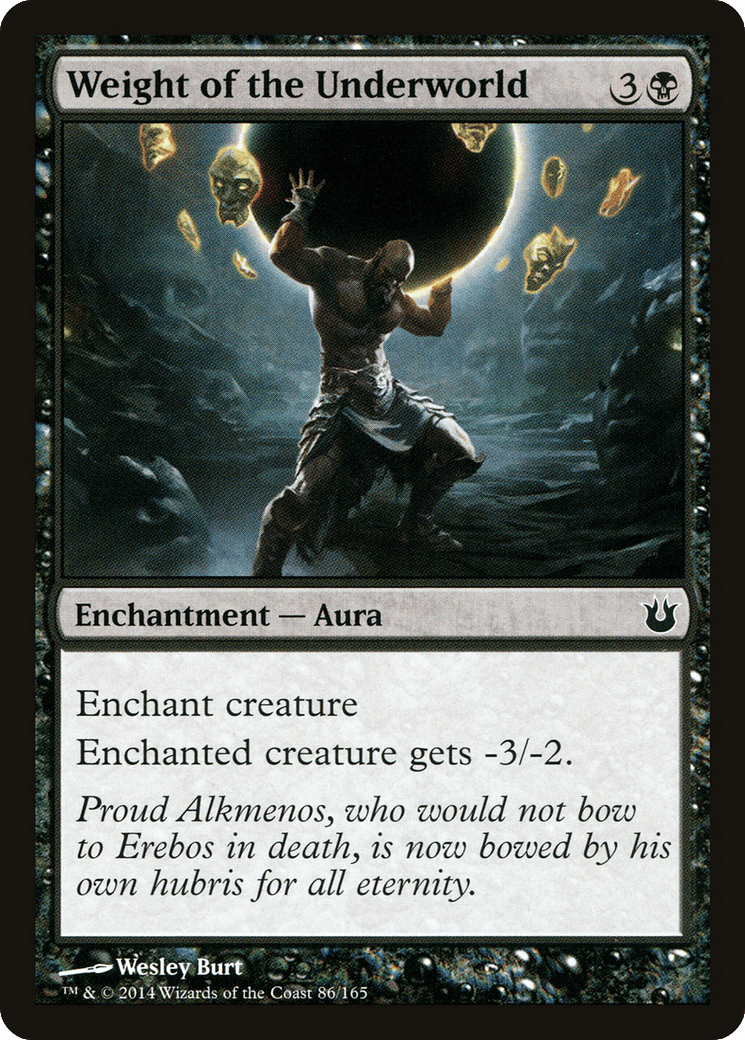 Proud Alkmenos, who would not bow to Erebos in death, is now bowed by his own hubris for all eternity.