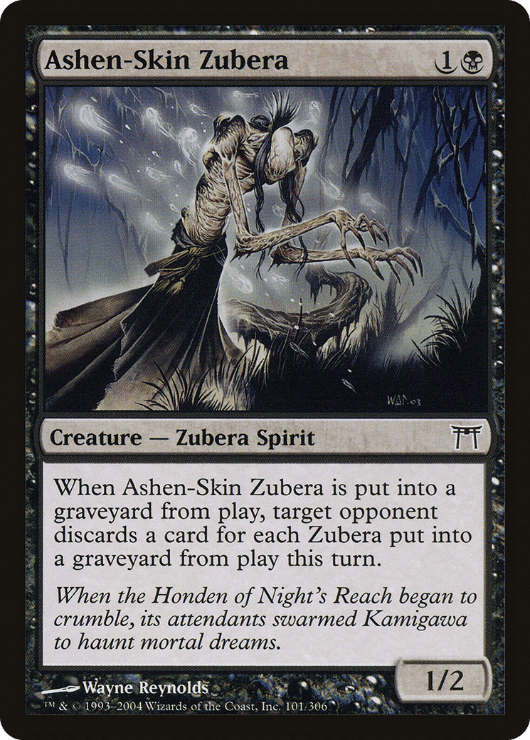 When this creature dies, target opponent discards a card for each Zubera that died this turn.