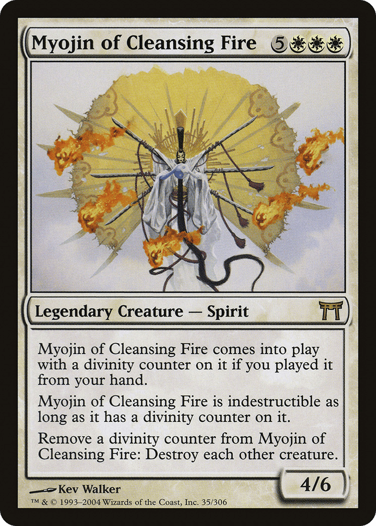 Remove a divinity counter from Myojin of Cleansing Fire: Destroy all other