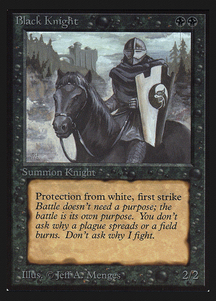 Protection from white (This creature can’t be blocked, targeted, dealt damage, or enchanted by anything white.)