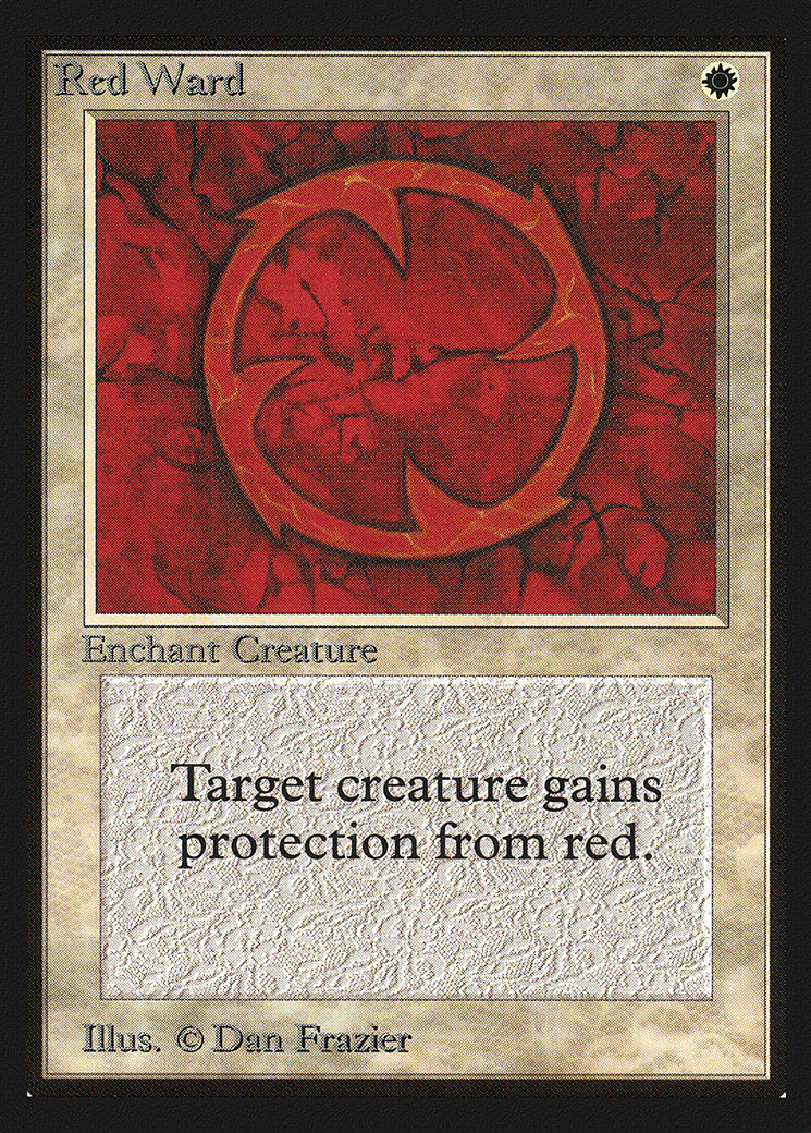 Enchant creature Enchanted creature has protection from red. This effect doesn’t remove this Aura.