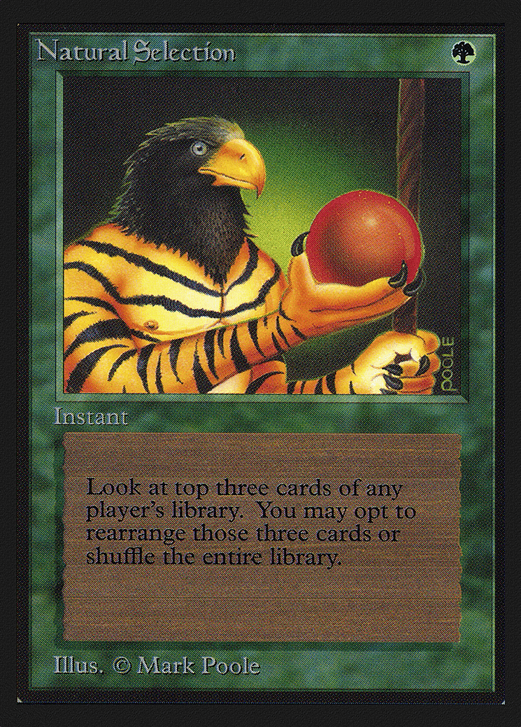 Look at the top three cards of target player’s library, then put them back in any order. You may have that player shuffle.