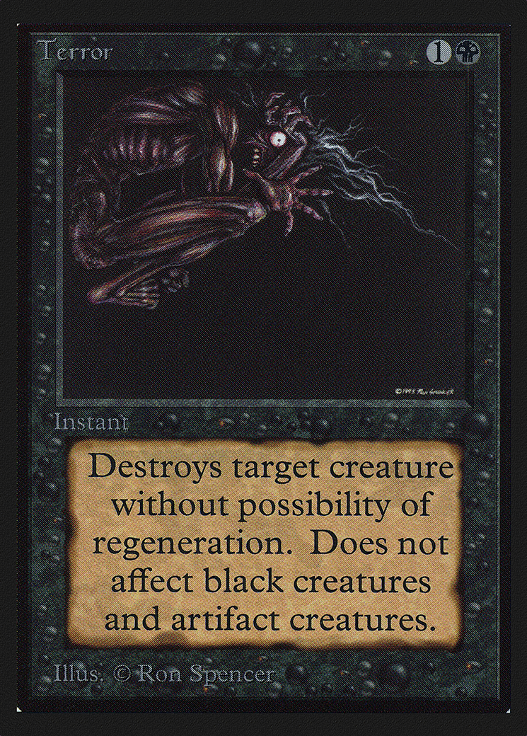 Destroy target nonartifact, nonblack creature. It can’t be regenerated.