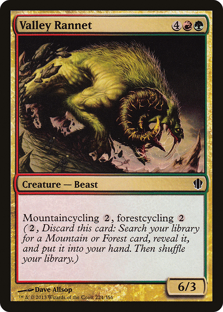 Mountaincycling {2}, forestcycling {2} ({2}, Discard this card: Search your library for a Mountain or Forest card, reveal it, put it into your hand, then shuffle.)
