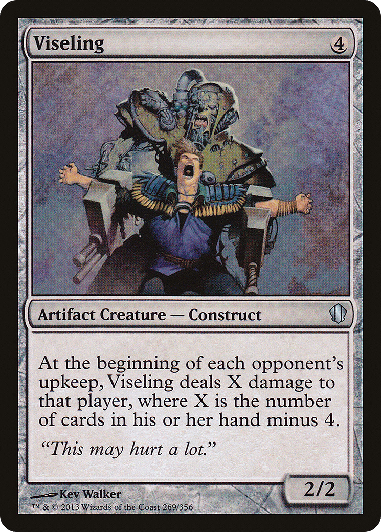 At the beginning of each opponent’s upkeep, this creature deals X damage to that player, where X is the number of cards in their hand minus 4.
