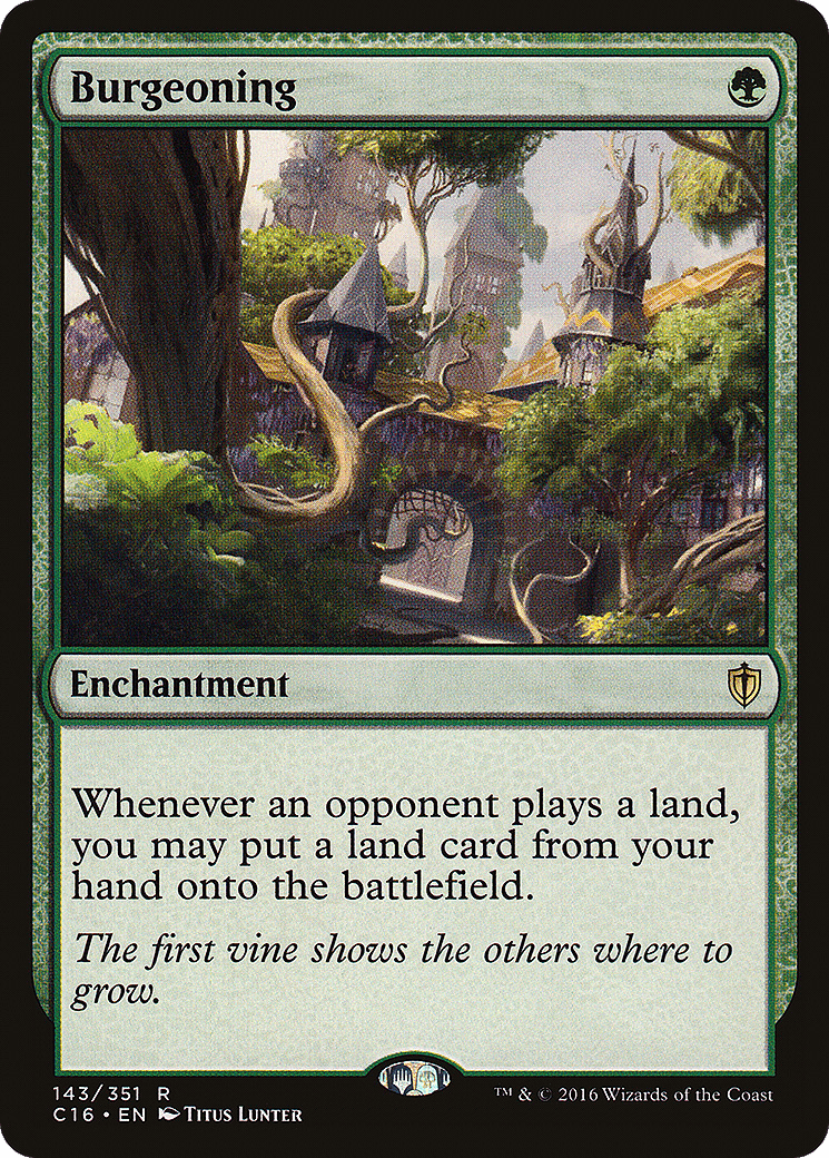 Whenever an opponent plays a land, you may put a land card from your hand onto the battlefield.
