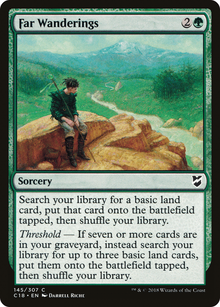 Threshold – If seven or more cards are in your graveyard, instead search your library for up to three basic land cards, put them onto the battlefield tappe