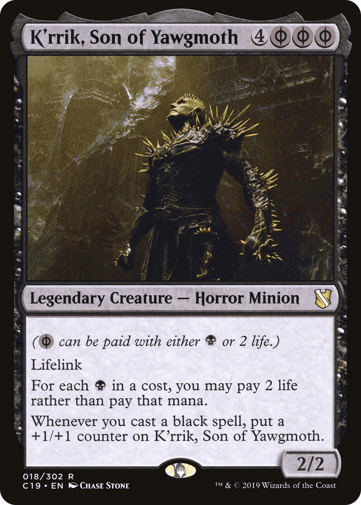 Whenever you cast a black spell, put a +1/+1 counter on K’rrik.