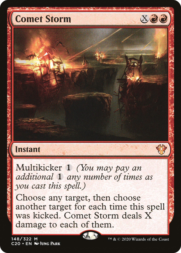 Choose any target, then choose another target for each time this spell was kicked. Comet Storm deals X damage to each of them.