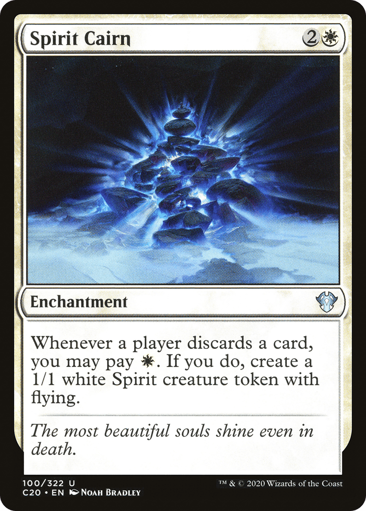Whenever a player discards a card, you may pay {W}. If you do, create a 1/1 white Spirit creature token with flying.