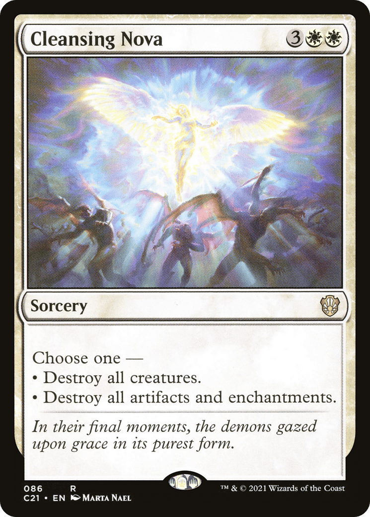 Choose one – – Destroy all creatures. – Destroy all artifacts and enchantments.