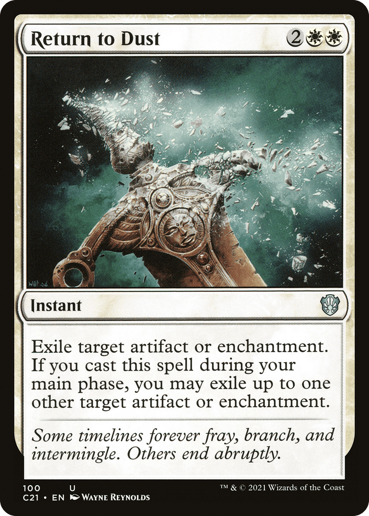 Exile target artifact or enchantment. If you cast this spell during your main phase, you may exile up to one other target artifact or enchantment.