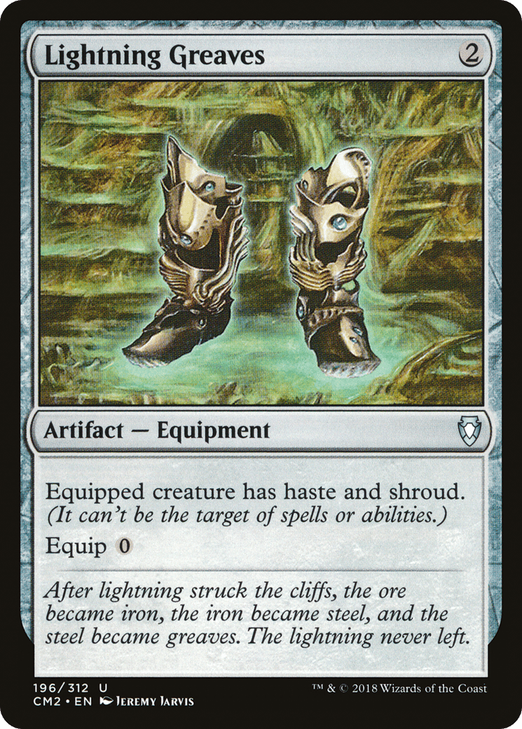 After lightning struck the cliffs, the ore became iron, the iron became steel, and the steel became greaves. The lightning never left.
