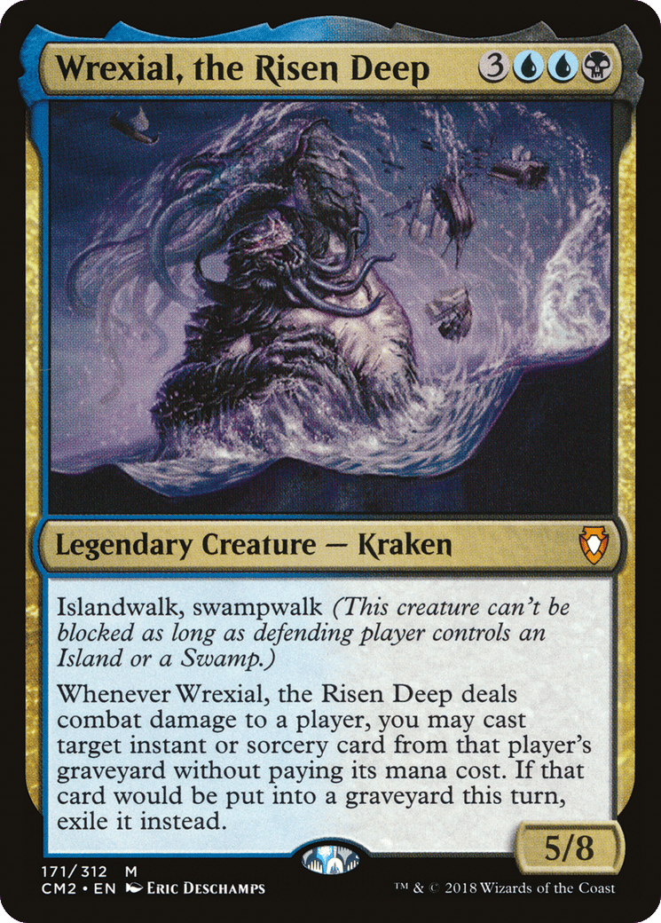 Whenever Wrexial deals combat damage to a player, you may cast target instant or sorcery card from that player’s graveyard without paying its