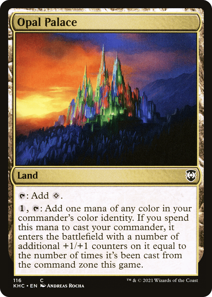 {1}, {T}: Add one mana of any color in your commander’s color identity. If you spend this mana to cast your commander, it enters with a number of additional +1/+1 counters on it equal to the number of times it’s been cast from the command zo