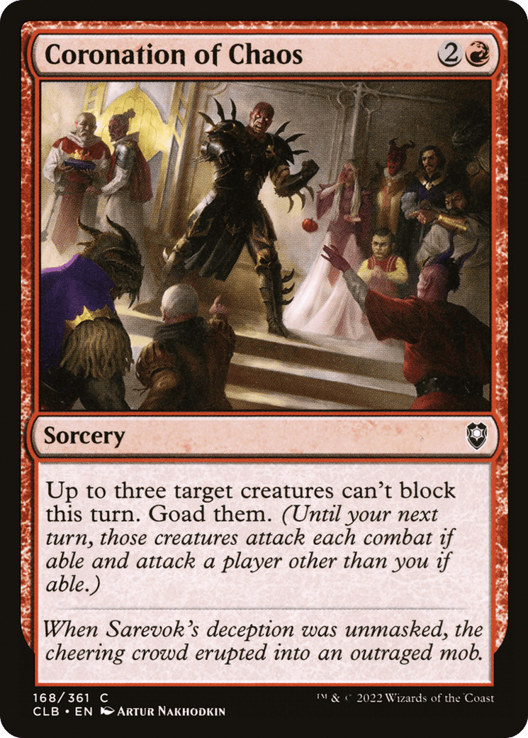 Up to three target creatures can’t block this turn. Goad them. (Until your next turn, those creatures attack each combat if able and attack a player other than you if able.)