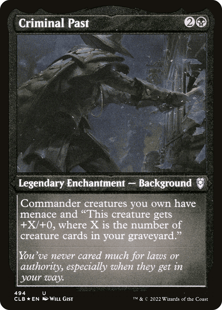 Commander creatures you own have menace and “This creature gets +X/+0, where X is the number of creature cards in your graveyard.” (A creature with menace can’t be blocked except by two or more creatures.)
