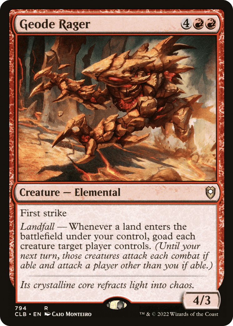Landfall – Whenever a land you control enters, goad each creature target player controls. (Until your next turn, those creatures attack each combat if able and attack a player other than you if able.)