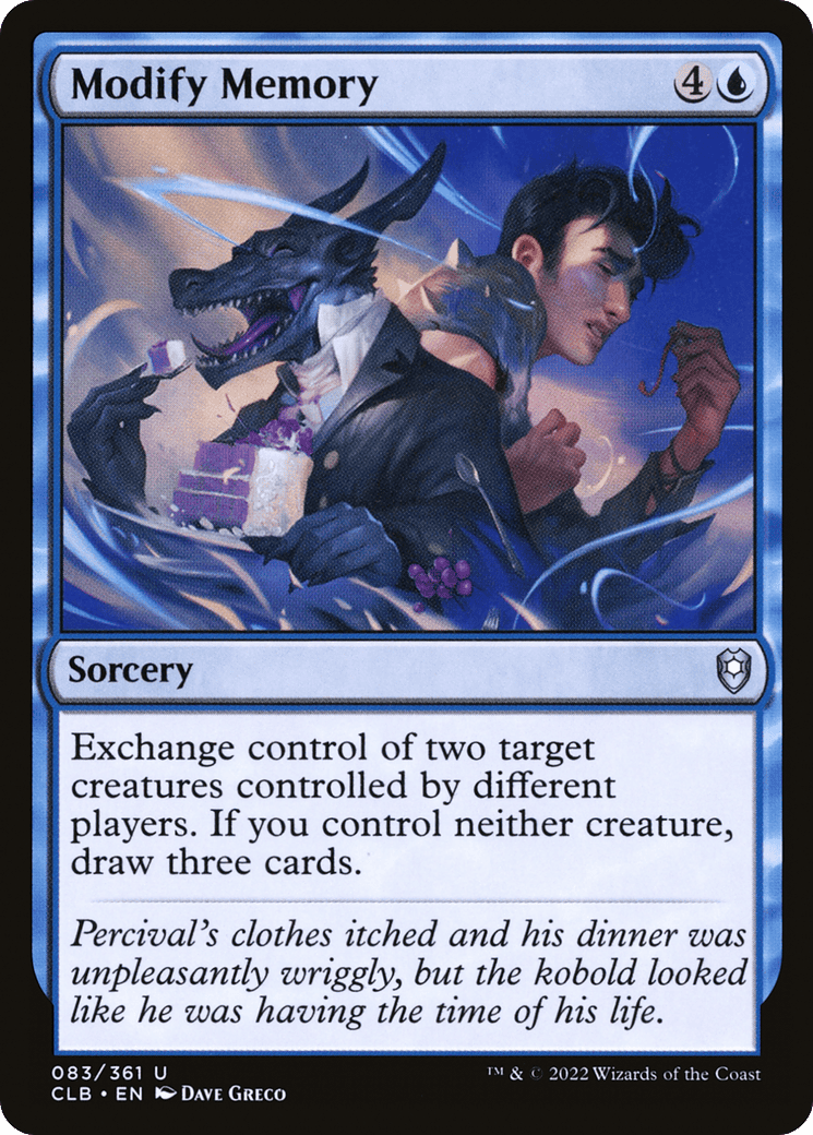 Exchange control of two target creatures controlled by different players. If you control neither creature, draw three cards.